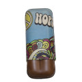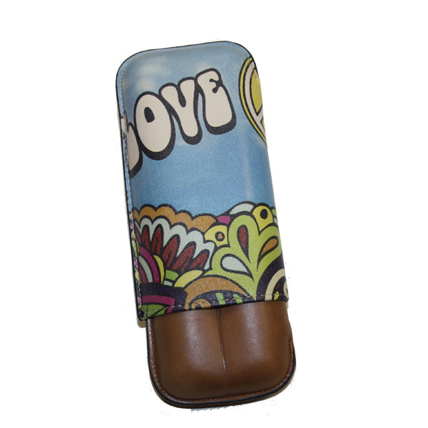 Récife rend hommage au célèbre festival de Woodstock avec cette étui cigares pour 2 modules, en cuir lisse marron imprimé aux couleurs hippie.