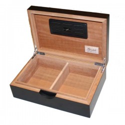 Cave à cigares Gentili fabrication italienne de trés belles finitions. Intérieur cèdre avec une séparation, équipée d'un humidificateur et d'un hygrométre Crédo analogique.