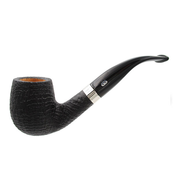 Pipe Chacom L'Essard de forme courbe N°43, finition sablée noire et d'une bague en nickel.