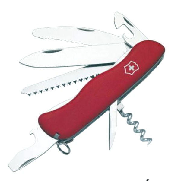 Grande lame a cran intérieur, ouvre boites, pincettes, cure-dents, tournevis décapsuleur, tire-bouchon, poiçon, scie,lame spéciale pour couper les ceinture de sécurité, anneau, cure-dent.