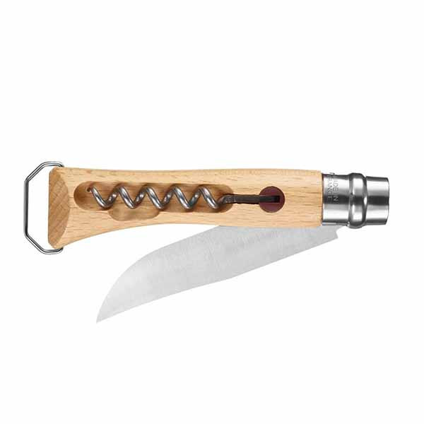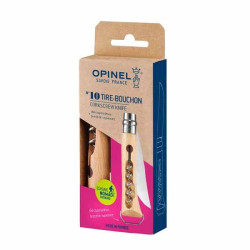 Couteau opinel N°10 VRI 3 pièce lame inox manche hêtre virole tournante tire-bouchons et décapsuleur dans le manche.