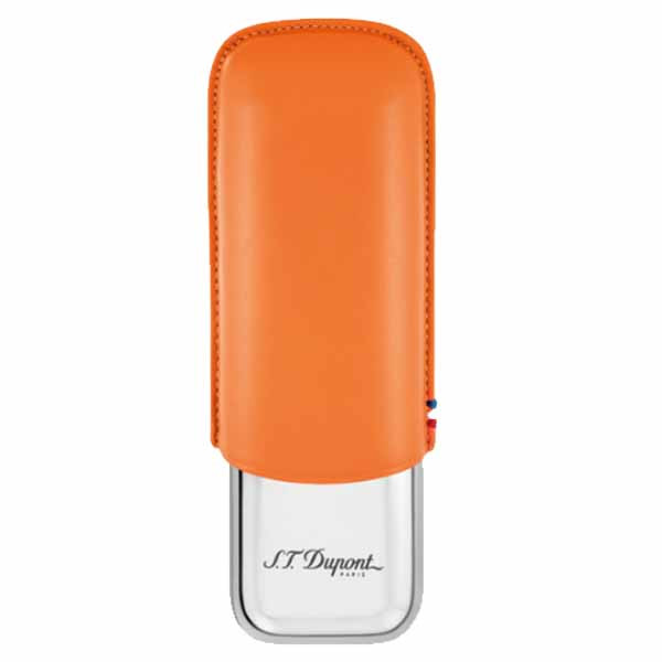 L alliance cuir de veau teinte orange et métal offre une originalité et une résistance pour la protection de vos cigares.