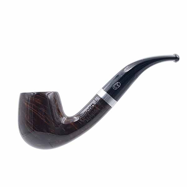 Pipe Chacom hybride courbe finition brune brillante, bague en chrome et d'un tuyau acrylique noir.