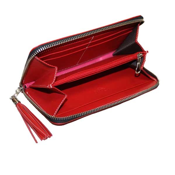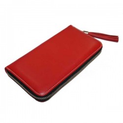 Compagnon à soufflets ouverture Zip, cuir veau pleine fleur teinture végétal rouge collection riviera de la marque Récife pouvant contenir vos papiers, billets, 6 cartes de crédits et petite monnaie.