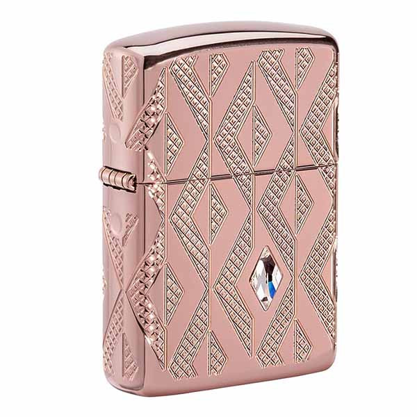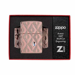 Zippo armor 360° couleur or rose orné d'un cristal.